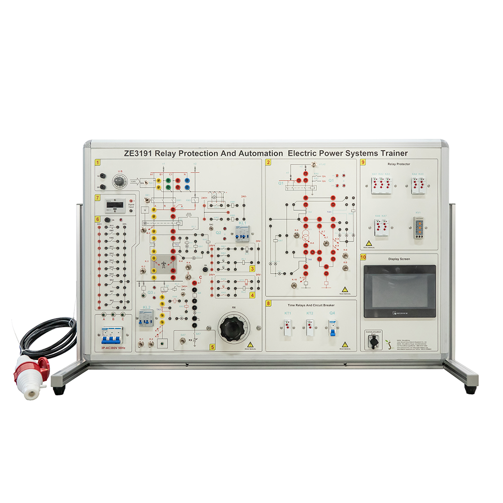 ZE3191 Relay protection and automation electric power systems Trainer Vocational Training Equipment Description The laboratory stand is designed for carrying out laboratory works in universities and secondary technical educational establishments for the study of “Power Supply of Industrial Enterprises”, “Relay protection and automation”, etc.